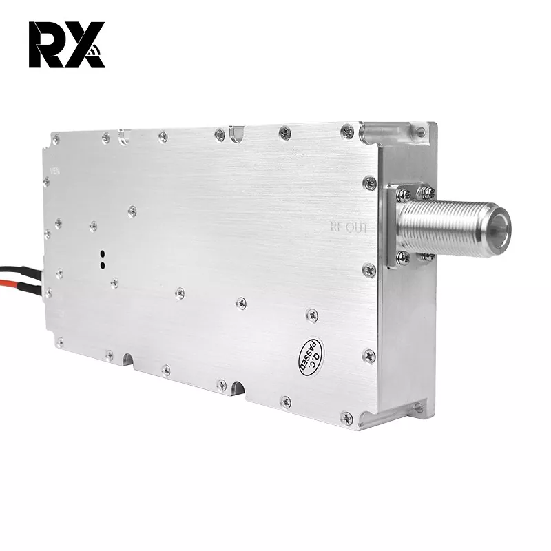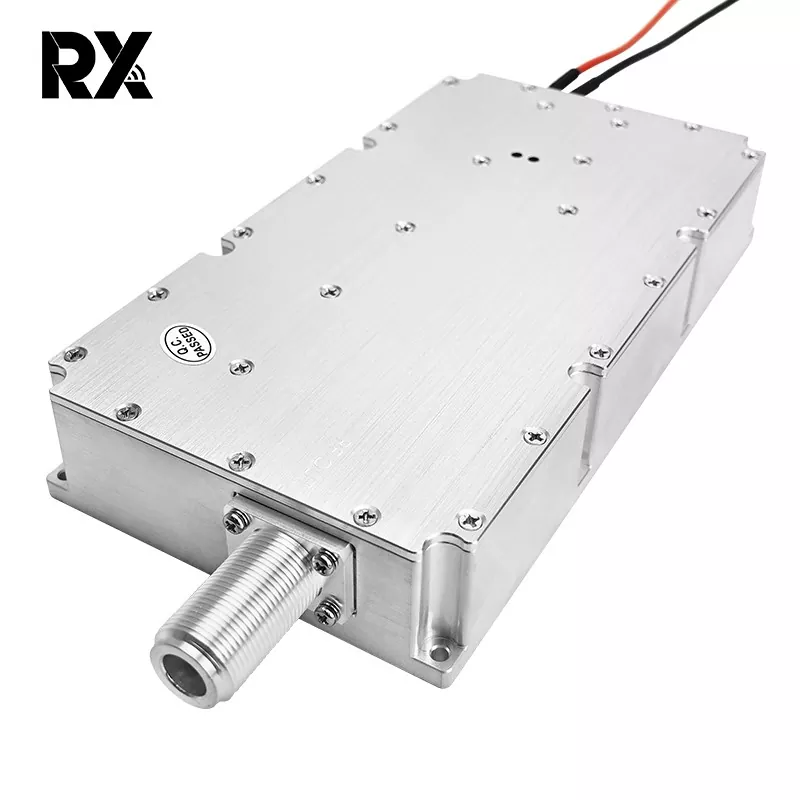 200 W High Power FPV Jammer Module 2100-2500MHz 28V DC on erittäin suorituskykyinen laite, joka on suunniteltu erityisesti tarkkoja häirintätilanteita varten. Se voi toimia 2100-2500 MHz taajuusalueella, ja se tarjoaa vakaan, tehokkaan häirintälähdön. Se toimii 28 V:n tasavirtalähteellä, jonka nimelliskäyttövirta on 20 A, ja käyttää suoraviivaista ohjauslogiikkaa – korkean tason aktivointia ja matalan tason deaktivointia – joustavaan ja tehokkaaseen toimintaan.