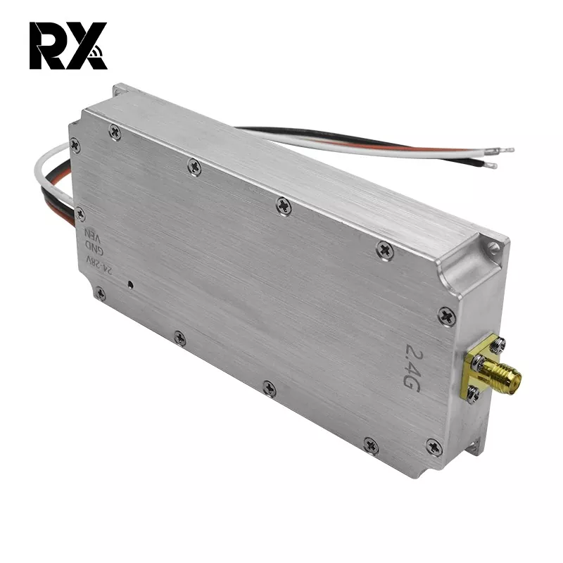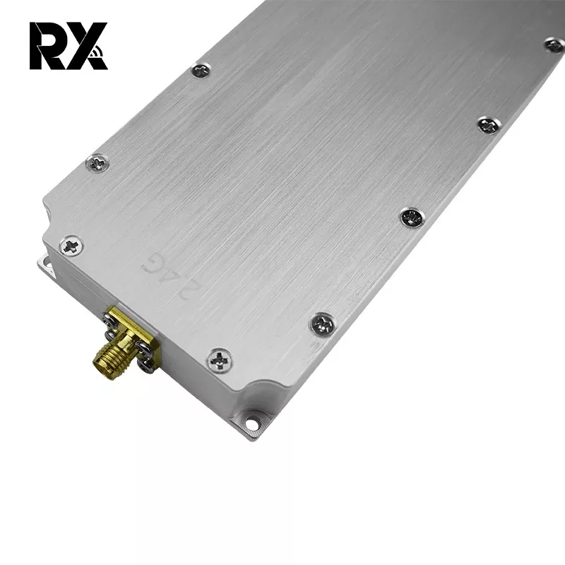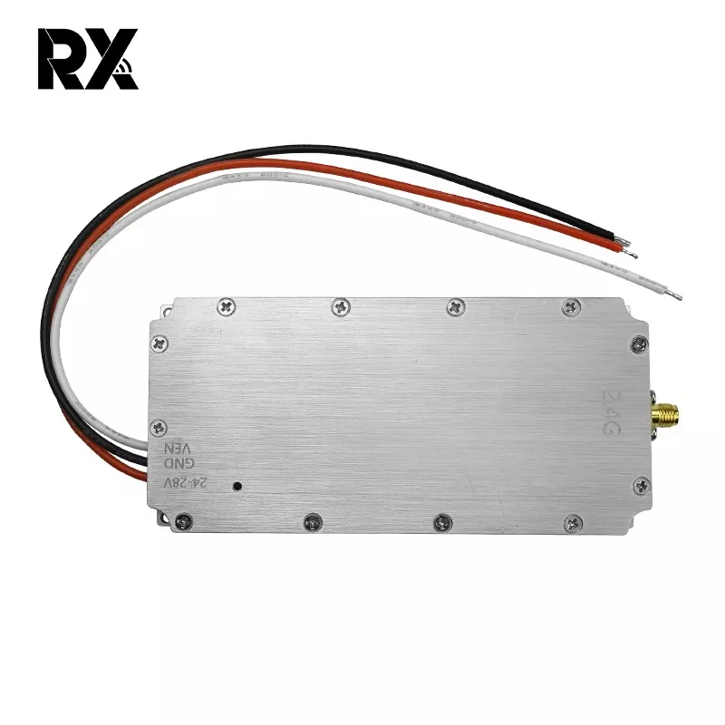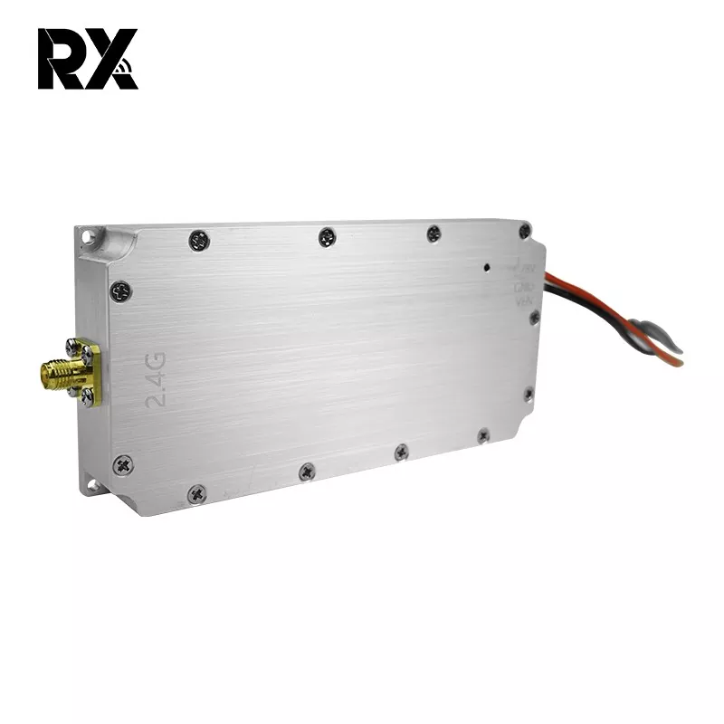 Tämä 2,4 G:n 50 W:n signaalihäiriömoduuli droneille, 50 W:n ulostuloteholla, voi tuottaa vahvoja RF-signaaleja. Sen tehokas 50 W:n ulostulo kattaa 2400–2485 MHz:n taajuusalueen, jota droonit käyttävät yleisesti viestintään, ohjaukseen, kaukosäätimiin, kuvansiirtoon ja satelliittitoimintoihin. Näin ollen se häiritsee tehokkaasti droonien normaalia toimintaa ja estää niitä toimimasta suunnitellusti.